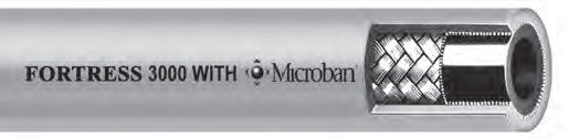 | APPLICATION: Fortress® 3000 is for use on pressure washer machines with working pressures up to 3000 psi. Applications include washdown service in food processing plants, dairies, packing houses, bottling plants, breweries, canneries and creameries. Its super abrasion and oil-resistant cover provides maximum protection against the adverse effects of oil and animal fats. The cover of Fortress® Washdown hose incorporates Microban’s® antimicrobial built-in product protection. |